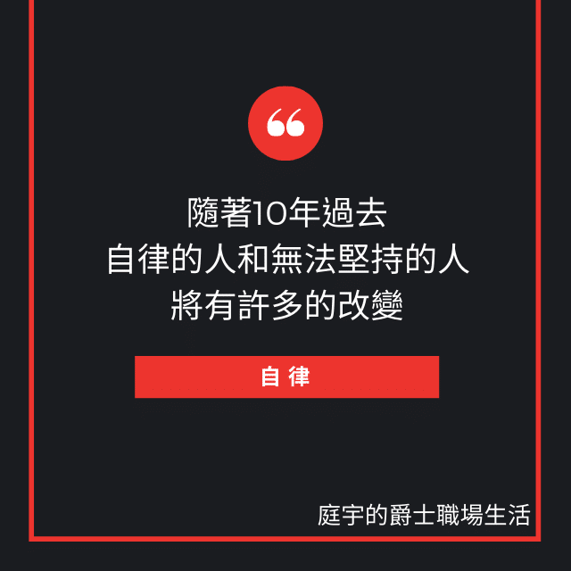 比爾蓋茨在 1996 年寫道:「我們總是高估未來兩年將發生的變化,而低估未來十年將發生的變化。不要讓自己陷入無所作為。」自律可帶來的改變,在隨著時間移動下,會造成更大的變化。